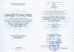 Руководитель ГК «Центр градостроительных проектов» Явид Я.А. получил свидетельство об аттестации специалиста в области сохранения объектов культурного наследия, в области реставрации иных культурных ценностей.