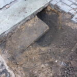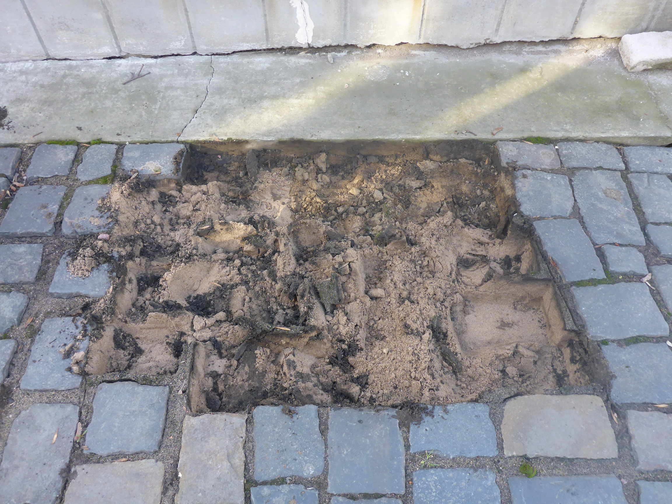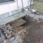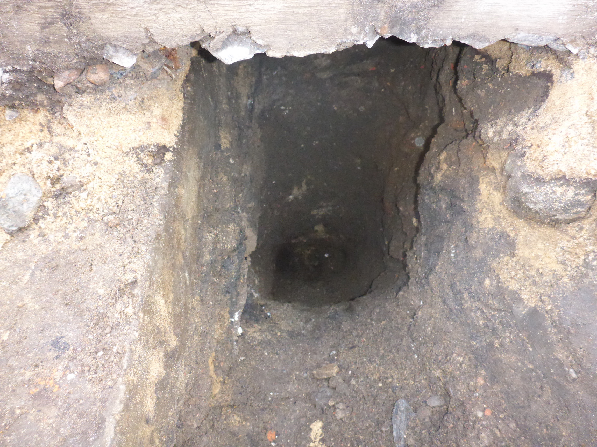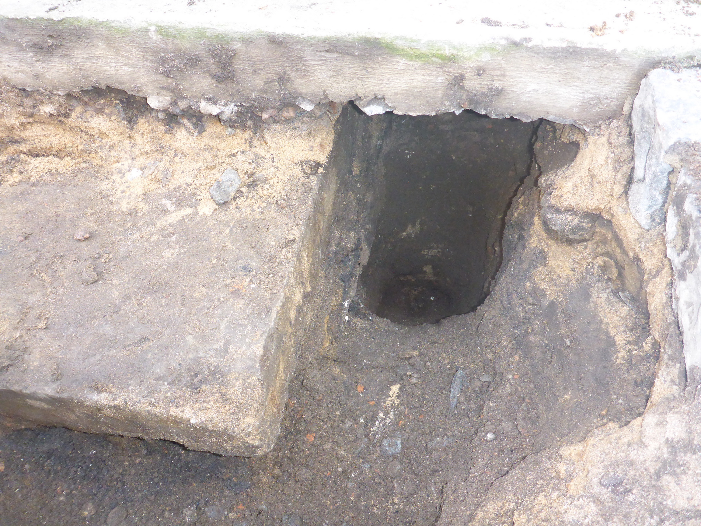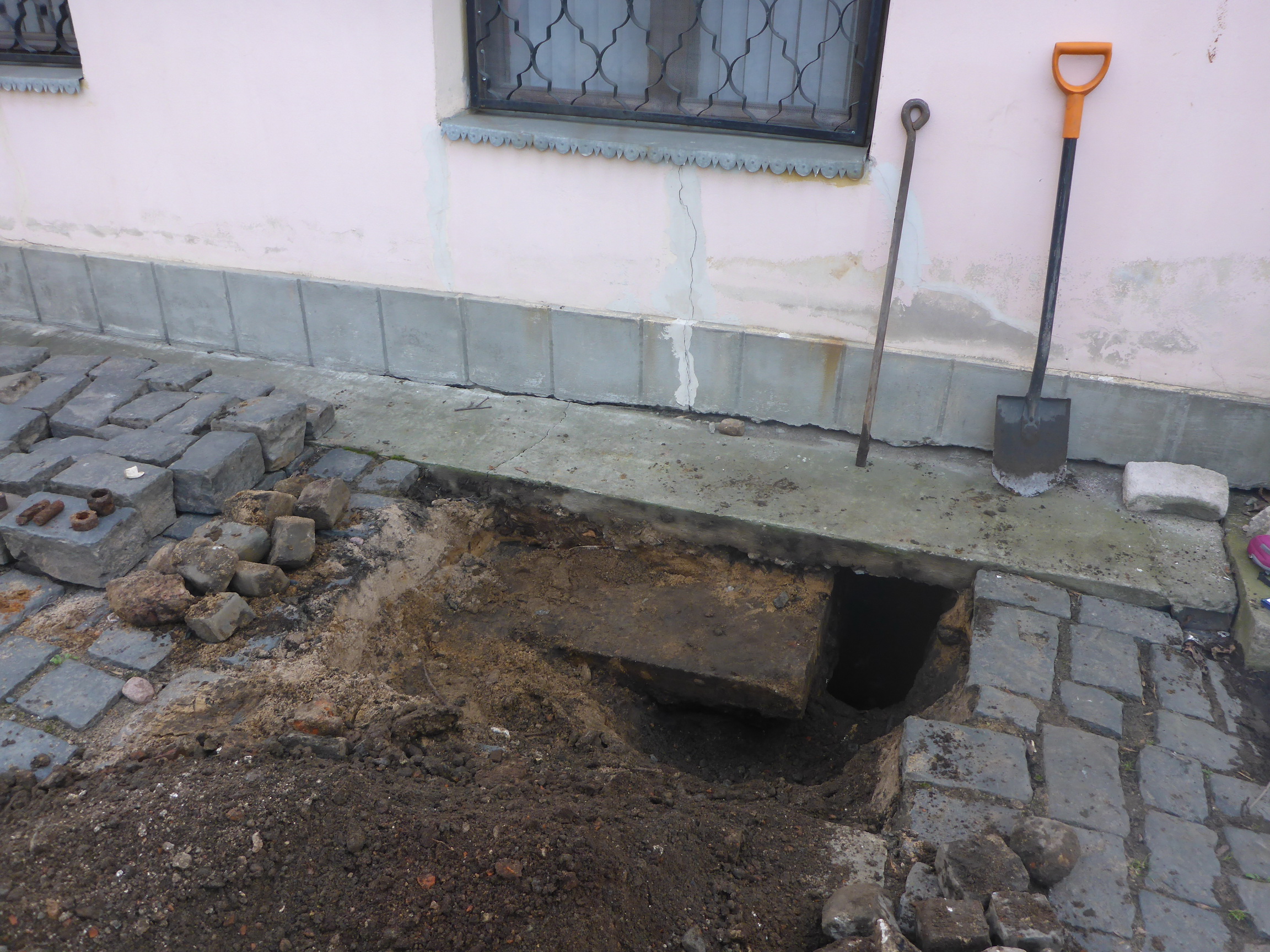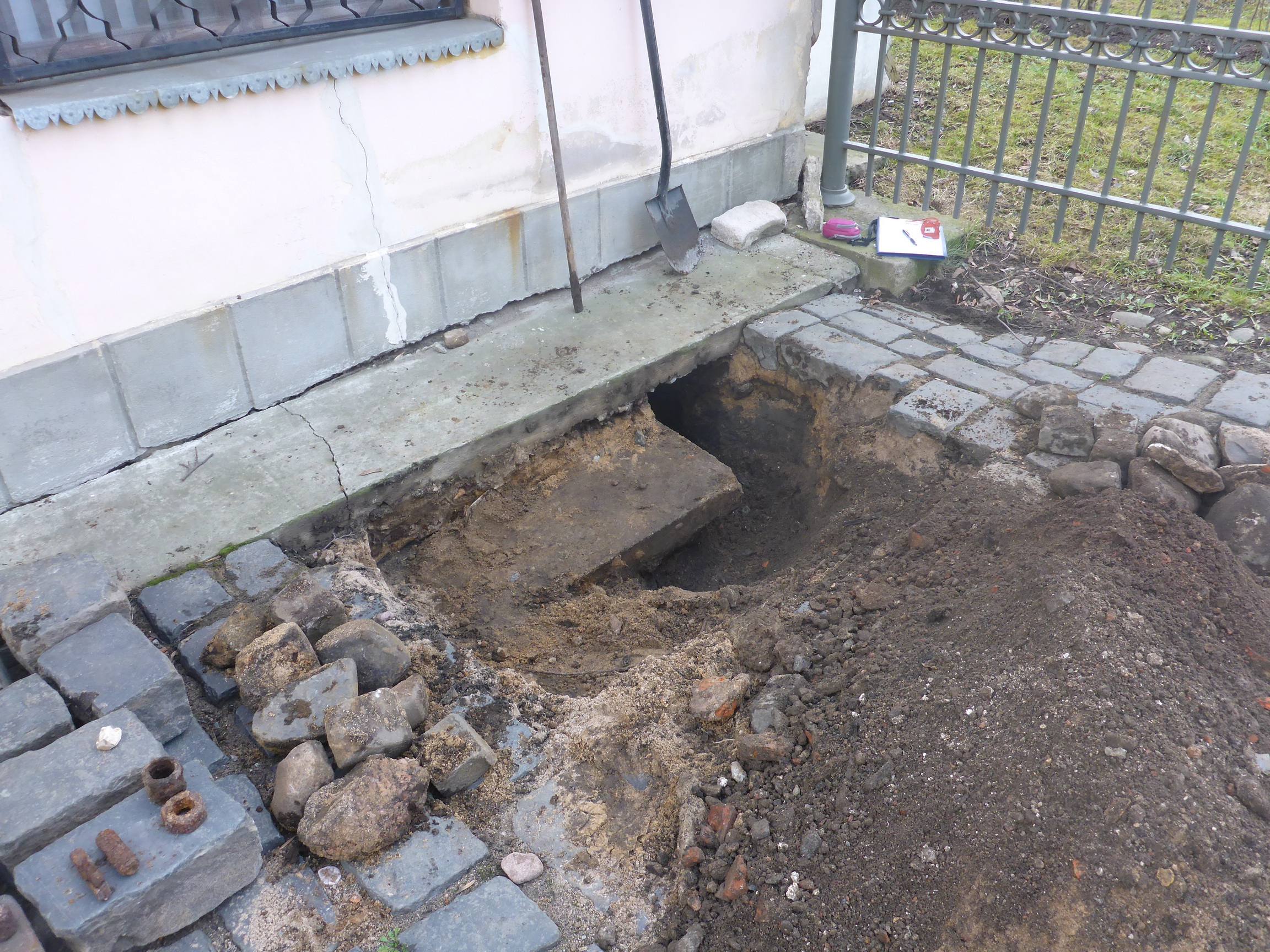 На фото ниже поэтапно показана наша недавняя работа по откопке шурфа вдоль фундамента объекта культурного наследия (храм).